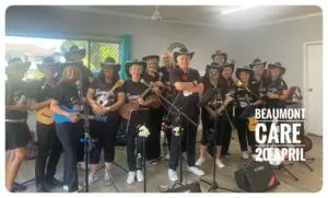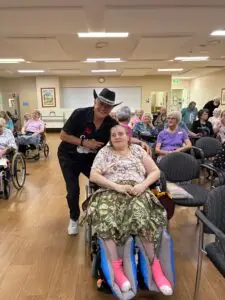 The second Concert at Beaumont Care was just as joyous, though, with an older audience, somewhat more subdued. We had a lady in that audience who was 96, and an ex-dancer. I was watching here tap her foot to our music. That was a success for us.